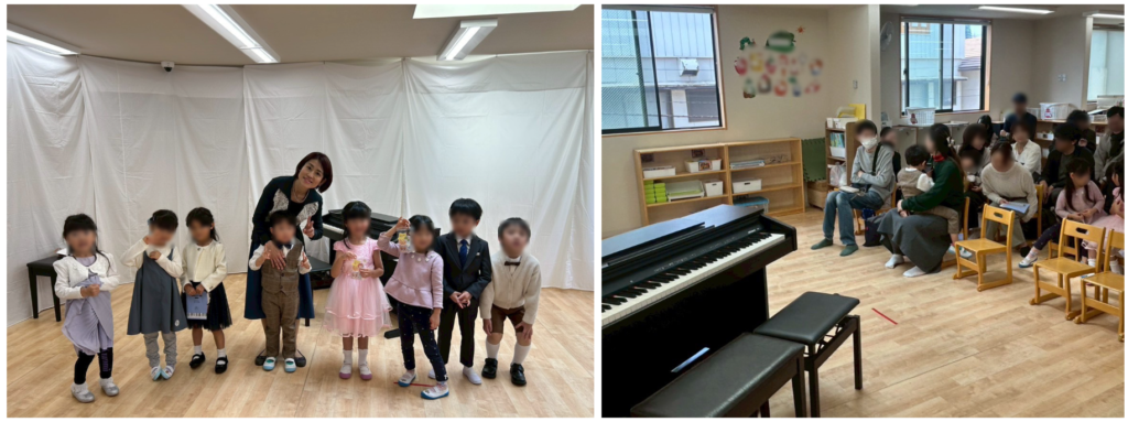 園内で日常的にレッスンを受けてきた子どもたちは、慣れ親しんだ環境の中で安心して舞台に立ち、自分の音に集中しながら演奏する姿が見られました。初めての発表会で、一人ひとりが最後まで弾き切る経験は、子どもたちにとって大きな自信につながる機会となりました。